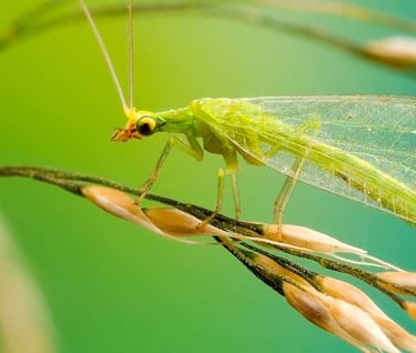 Aussi la métamorphose de la chrysope, de la larve à la chrysalide à la demoiselle aux yeux d''or ...