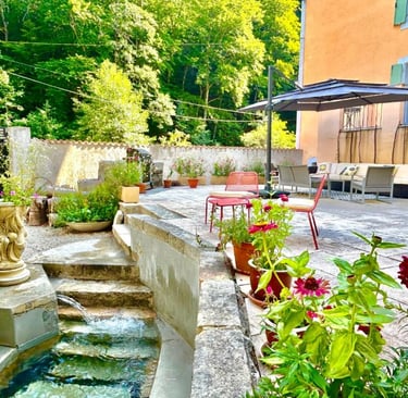 Notre Dame d'Escouloubre, ancienne cure thermale, lieu du séjour, au bord de la rivière Aude, dispose de plusieurs sources d’eau chaude privées dont la température varie de 18 à 60 degrés.