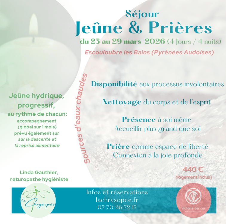 Le jeûne comme outil de nettoyage et régénération et comme outil spirituel : aiguiser sa vision intérieure, rentrer en soi même (metanoïa- le retournement)